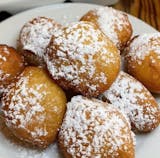 Half tray chicken parmigiana, half tray baked cheese ravioli, half tray garlic knots, half tray zeppoles.
